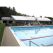 Der neue Baukörper wurde in massivbauweise mit versetztem Pultdach, mit Dachneigungen zur Süd- und Nordseite errichtet. Auf der südlichen Pultdachfläche mit einer Neigung von 25° konnten insgesammt ca. 200m² Solarmodulen installiert werden. Diese unterstützen das Aufheizen des Schwimmbeckenwassers.